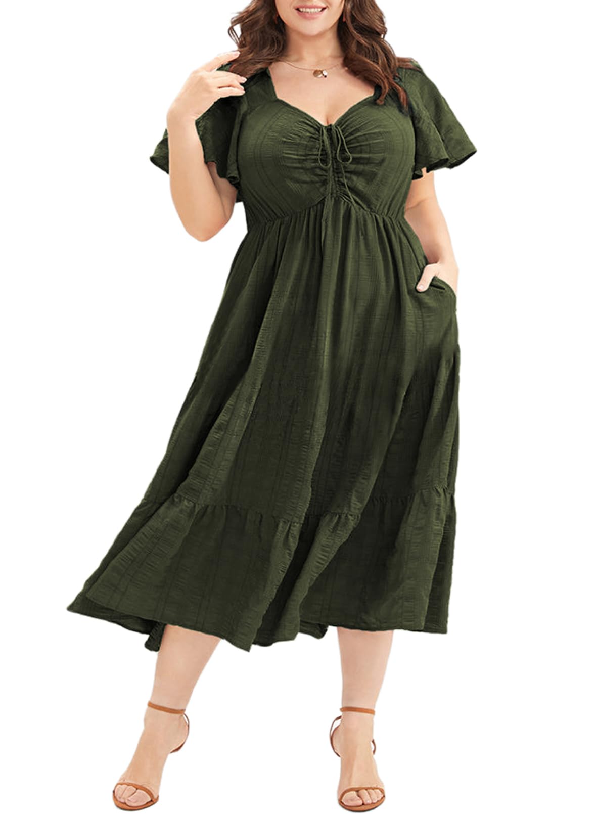 Eytino Plus Size Summer Dress for Women Sweetheart Neck Ruffle Tiered Maxi Long Dresses (1X-5X) | Eytino Plus Size Swee
