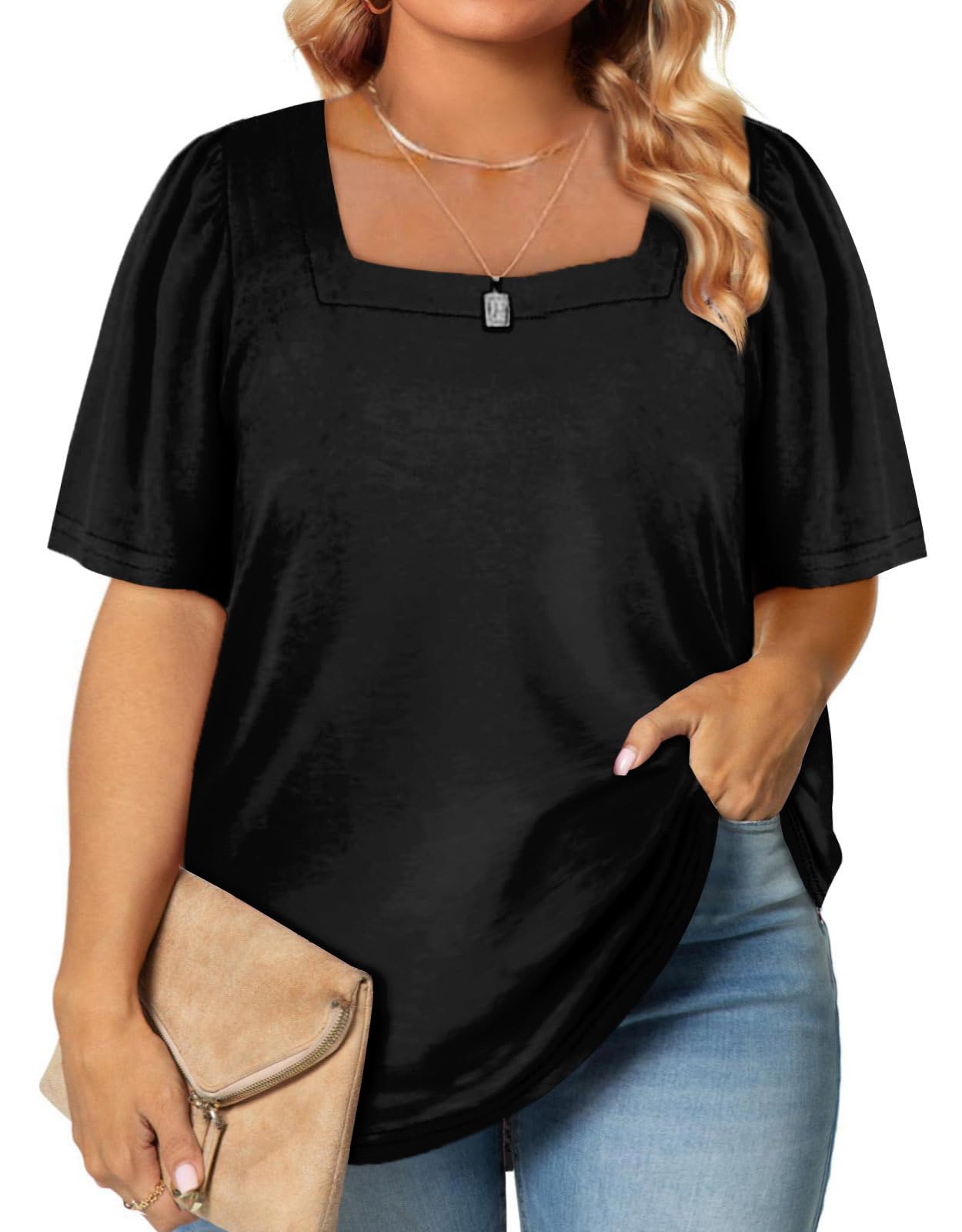 Eytino Plus Size Women's Fall Tops Square Neck Puff Long Sleeve Casual Tee Shirts | Eytino Women's Plus Size Casual Fal