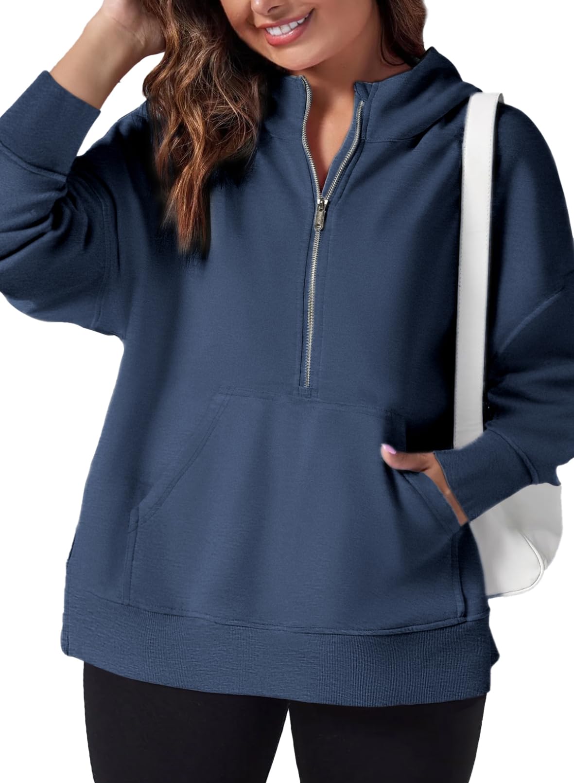 Eytino Plus Size Half Zip Sweatshirt for Women with Pockets|Casual Oversized Long Sleeve Hoodies|Women's Sweatshirt Tops