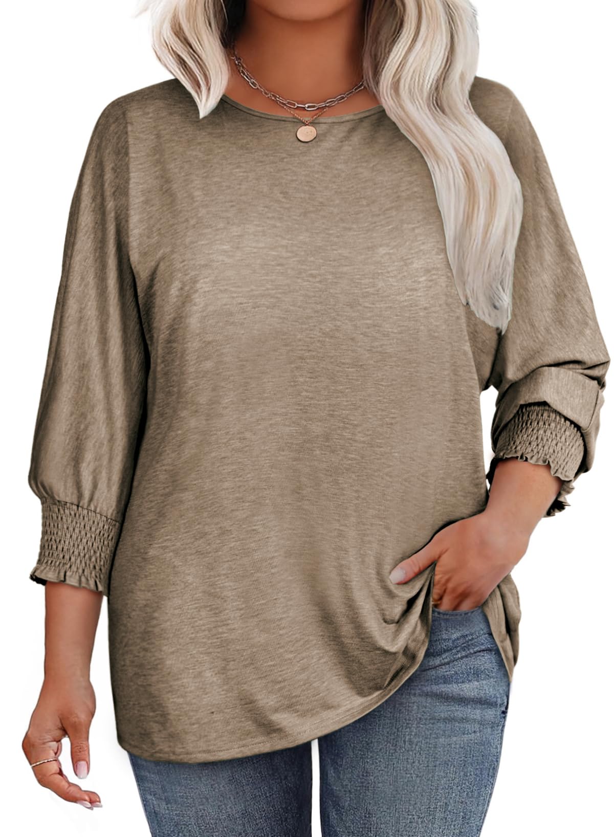 Eytino Plus Size Crew Neck T-Shirts for Women | Eytino Plus Size 3/4 Sleeve Blouses for Women | Eytino Plus Size Loose